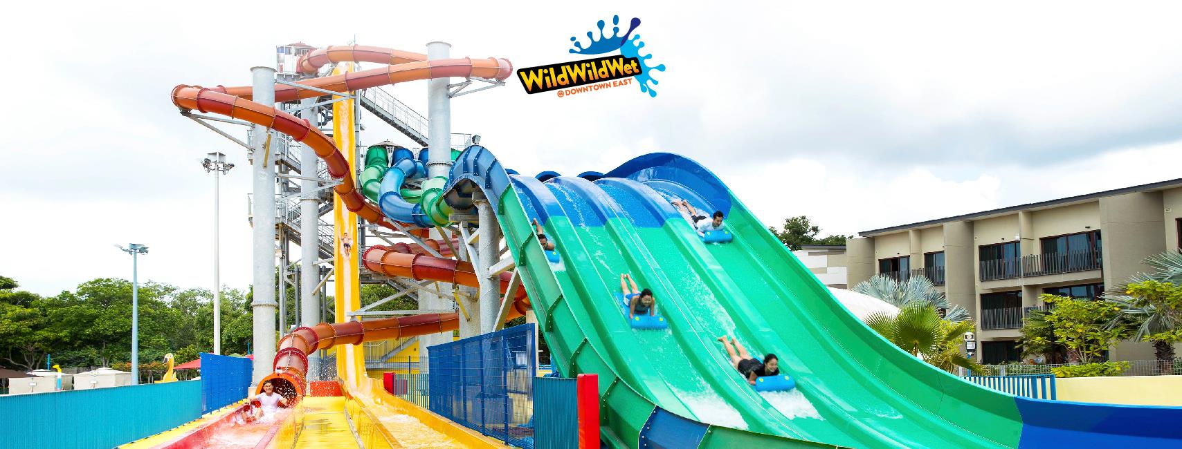 Opened in 2004, Wild Wild Wet is one of Singapore’s largest water parks. They promise you a day of thrills and spills for the whole family. Situated at Downtown East, it remains one of the most popular family attractions in Singapore by NTUC Club. From adrenalin-pumping rides to relaxing and gentle ones, visitors are guaranteed a fun-filled day while they beat the heat. Amidst the fun, guests’ safety remains our top priority. Various inflatable floats customized for different rides ensure adventures come with safety in mind as well. To enhance safety, life jackets are available for free usage for adults and children. Baby water carriers are also available for free to allow parents to have a splashing good time with their infants. Wild Wild Wet lifeguards are specially trained in stringent international standards for life guarding at water-based attractions.